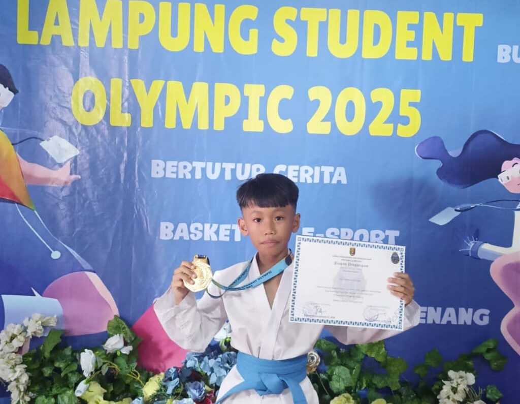 BANDAR LAMPUNG – Abrisam Alfredo Arsyad siswa kelas IV B Sekolah Dasar Negeri 2 Rawalaut (SD Teladan) kembali berhasil merebut Medali Emas Cabang Karate (Kata Perorangan Usia Dini Putra). pada Kejuaraan Lampung ‘Student Olympic 2025 Se-Provinsi Lampung Cabang Karate. Event bergengsi yang diadakan Dinas Pendidikan dan Kebudayaan Provinsi Lampung di Stadion Indoor PKOR Way Halim, Bandar Lampung yang berlangsung pada hari Minggu, 19 Oktober 2025.