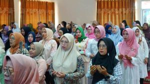 Pelaksana Tugas (Plt) Kepala Disdikbud Bandar Lampung, Hj. Eka Afriana, S.Pd, bersama para pejabat dinas setempat, tampak mengikuti dengan khusuk acara tersebut.