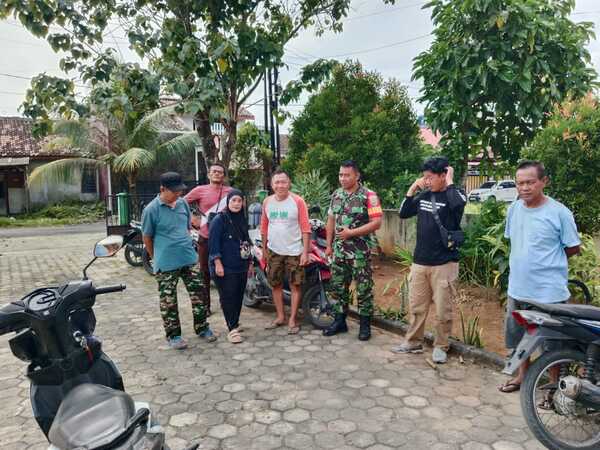 Babinsa Koramil 410-01/Panjang Bersama Warga Gotong Royong Besrihkan Lingkungan