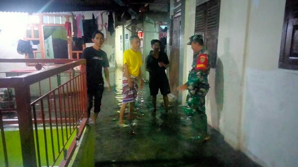 Banjir rob yang dipicu oleh pasang air laut yang tinggi tersebut terjadi sekitar pukul 19.15 WIB, menyebabkan genangan air merendam pemukiman warga, khususnya di sekitar wilayah Pasar Kangkung. Dalam kegiatan yang mengusung semangat 🇲🇨 RADIN INTEN 🇲🇨, Babinsa setempat, Sertu Aris Susilo, turun langsung ke lokasi untuk memastikan keselamatan warga dan memantau perkembangan situasi.