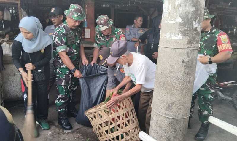 BANDAR LAMPUNG – Dalam rangka menciptakan lingkungan yang bersih, sehat, dan bebas dari ancaman banjir musim hujan, Babinsa Kelurahan Kedaton Sertu Guratno bersama jajaran Koramil 410-06/Kedaton menggelar kegiatan “Kamis Bersih: Gerebek Pasar Tempel Wayhalim”. Kegiatan ini dilaksanakan secara gotong royong bersama Wadanramil 410-06/Kedaton, Pemerintah Kelurahan, serta masyarakat setempat, mencerminkan semangat *kolaborasi TNI-Pemdes-Warga* dalam membangun kesadaran kebersihan dan kepedulian lingkungan.