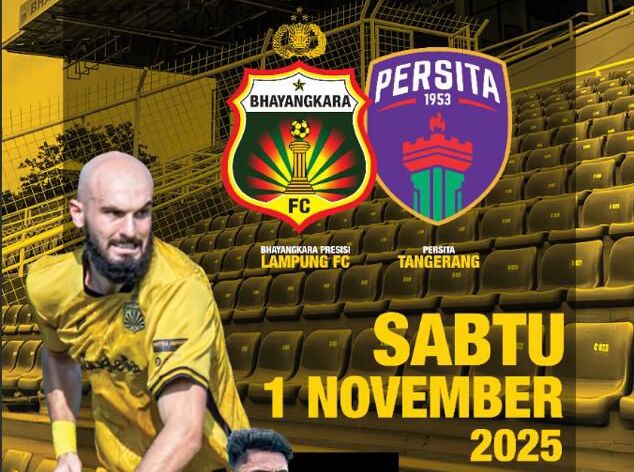 BANDAR LAMPUNG — Keseruan Liga Indonesia akan kembali hadir di Kota Tapis Berseri. Tim kebanggaan masyarakat Lampung, Bhayangkara Presisi Lampung FC, akan menjamu Persita Tangerang dalam laga seru yang digelar di Stadion PKOR Sumpah Pemuda, Bandar Lampung, pada Sabtu, 1 November 2025 pukul 15.30 WIB.