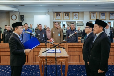 BANDAR LAMPUNG – Sekretaris Daerah Provinsi Lampung Marindo Kurniawan, mewakili Gubernur Lampung Rahmat Mirzani Djausal, melantik Budhi Darmawan sebagai Kepala Dinas Energi dan Sumber Daya Mineral (ESDM) Provinsi Lampung dan Febrizal Levi Sukmana sebagai Kepala Dinas Pengelolaan Sumber Daya Air (PSDA) Provinsi Lampung, Kamis (9/4/2026).
