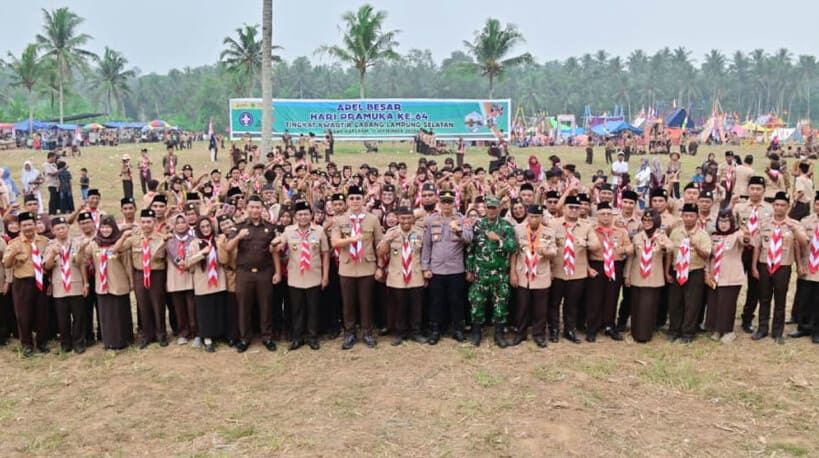 LAMPUNG SELATAN – Lapangan Desa Triharjo, Kecamatan Merbau Mataram, menjadi saksi semangat kebersamaan ribuan anggota Pramuka dalam Apel Besar Hari Pramuka ke-64 Tingkat Kwartir Cabang Lampung Selatan, Selasa (16/9/2025). Bupati Lampung Selatan, Radityo Egi Pratama, bertindak sebagai pembina upacara.