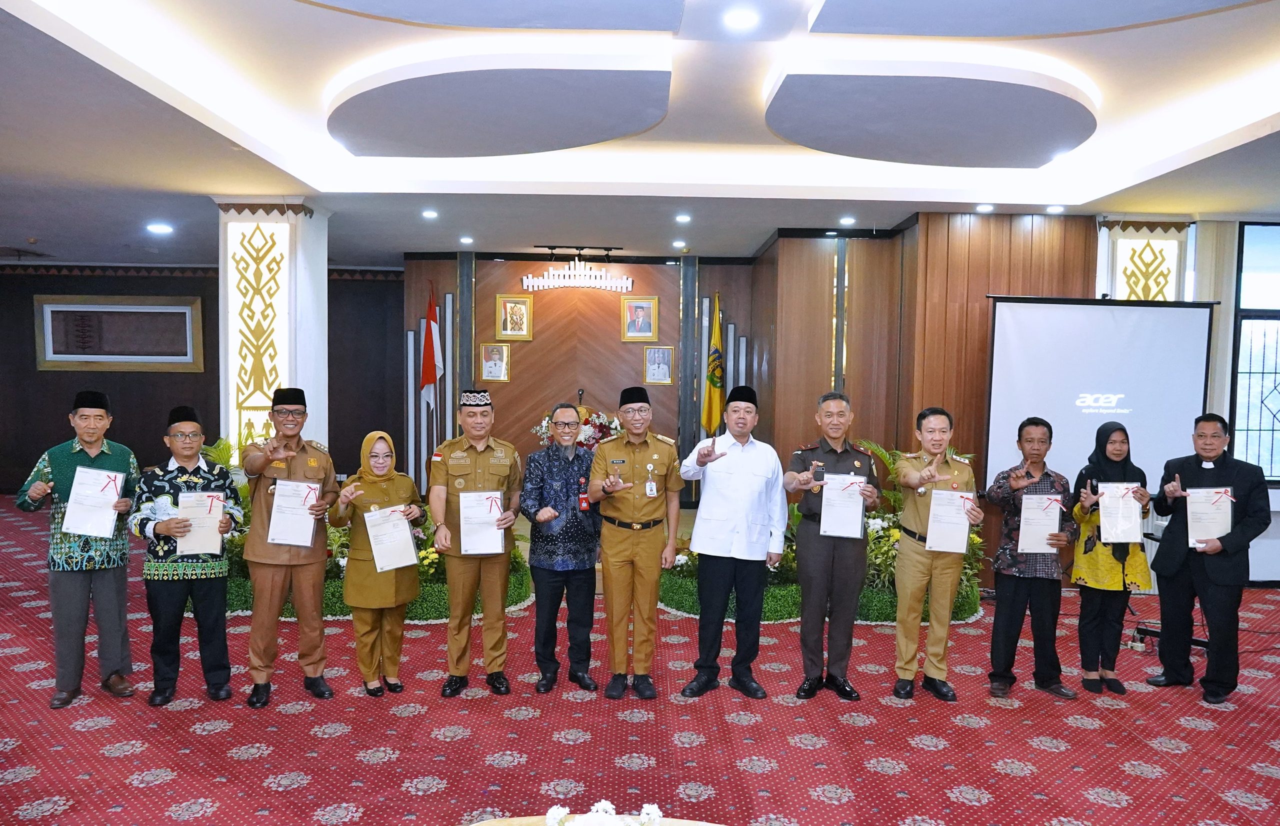 BANDAR LAMPUNG – Gubernur Lampung, Rahmat Mirzani Djausal bersama Kepala Kantor Wilayah Badan Pertanahan Nasional (BPN) Provinsi Lampung, Hasan Basri Natamenggala menandatangani Naskah Perjanjian Hibah Daerah (NPHD), disaksikan langsung oleh Menteri Agraria dan Tata Ruang/Kepala BPN RI, Nusron Wahid. Penandatanganan berlangsung di Ruang Abung, Balai Keratun, Selasa (29/7/2025).