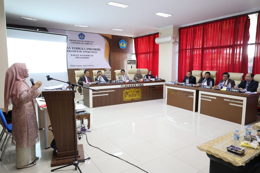 BANDAR LAMPUNG – Universitas Lampung (Unlla) kembali melahirkan doktor baru di bidang ilmu lingkungan. Dalam ujian terbuka yang dipimpin Wakil Rektor Bidang Perencanaan, Kerja Sama, dan Sistem Informasi Prof. Dr. Ayi Ahadiat, S.E., M.B.A.