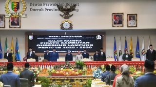 Rapat paripurna yang berlangsung di ruang rapat utama DPRD Lampung itu dipimpin oleh Ketua DPRD setempat, Ahmad Giri Akbar, S.E.,M.B.A