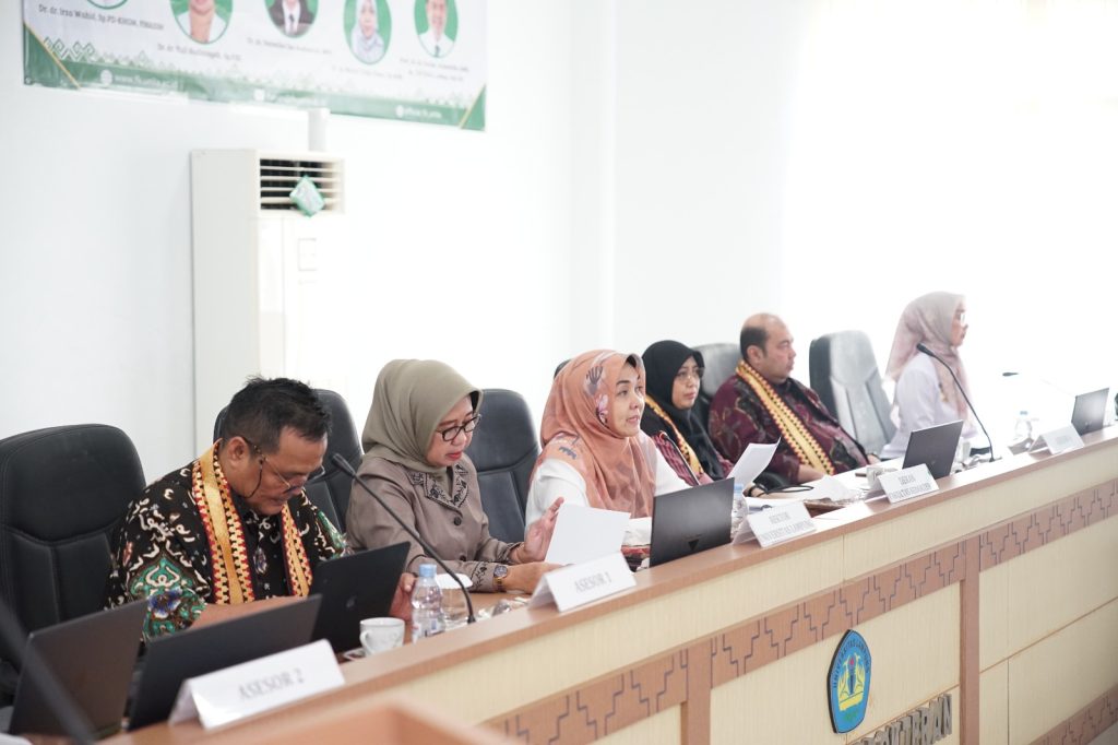 Dekan FK Unila, Dr. dr. Evi Kurniawaty, M.Sc., menjelaskan, proses akreditasi mencakup penilaian komprehensif, mulai dari asesmen internal hingga evaluasi terhadap jejaring rumah sakit pendidikan mitra seperti RSUD Dr. H. Abdul Moeloek, RSD dr. A. Dadi Tjokrodipo, serta institusi lain termasuk PTPN.