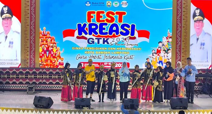 “Penampilan pentas seni yang dibawakan guru dan pelajar dari Bandar Lampung, ini untuk menghibur peserta Fest Kreasi GTK 2025,” ujar Kepala Bidang Pendidikan Dasar Disdikbud itu yang didampingi Sekretaris PGRI Kota Bandar Lampung, Taufik Hidayat, S.Pd itu.