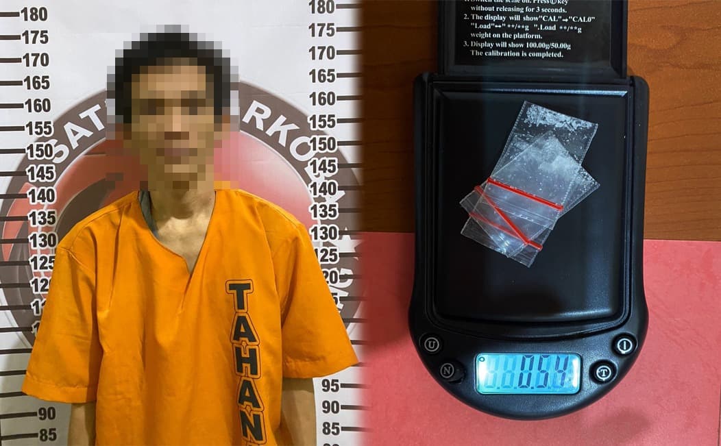 “Setelah dipastikan rumah tersebut ada penghuninya, petugas kami langsung melakukan penggerbekan dan dari dalam rumah ditangkap seorang pria yang merupakan pemilik rumah. Pelaku sempat berusaha melarikan diri dengan cara memanjat dinding rumah, namun aksi tersebut digagalkan petugas kami,” papar AKP Yofi.