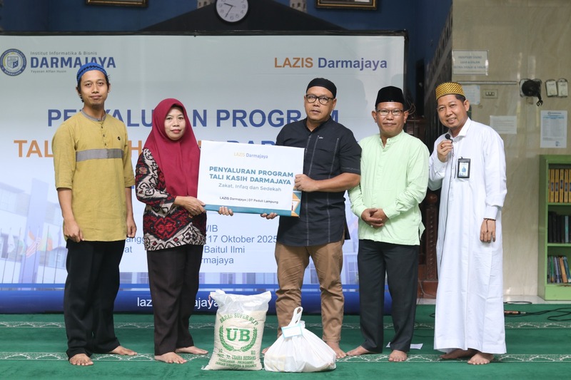 BANDAR LAMPUNG – Lembaga Amil Zakat, Infak, dan Sedekah (Lazis) Institut Informatika dan Bisnis (IIB) Darmajaya kembali menyalurkan Program Tali Kasih Zakat, Infak, dan Sedekah di Masjid Baitul Ilmi, Jumat (17/10/25).