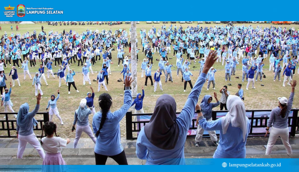 Kegiatan senam massal ini dipimpin langsung oleh Ketua Tim Penggerak PKK Kabupaten Lampung Selatan, Zita Anjani, yang hadir dengan penuh kehangatan.