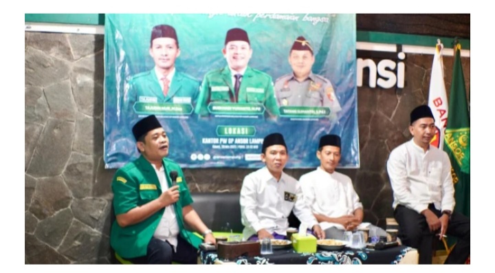 BANDAR LAMPUNG – Menjelang pelantikan Pimpinan Wilayah (PW) Gerakan Pemuda (GP) Ansor Lampung masa khidmah 2024–2029 yang dijadwalkan pada 8 Juni 2025 mendatang, Kamis (29/5/2025) malam, digelar acara tahlilan, doa bersama, dan istighotsah akbar di Kantor PW GP Ansor Lampung, di kawasan Rajabasa, Bandarlampung.