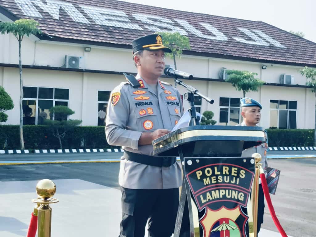 MESUJI – Kapolres Mesuji, Polda Lampung, AKBP Dr. Muhammad Firdaus S.Ik, M.H., mengukuhkan Nomenklatur Pamapta SPKT Polres Mesuji di Lapangan Apel Mapolres setempat, jumat (17/10/25).