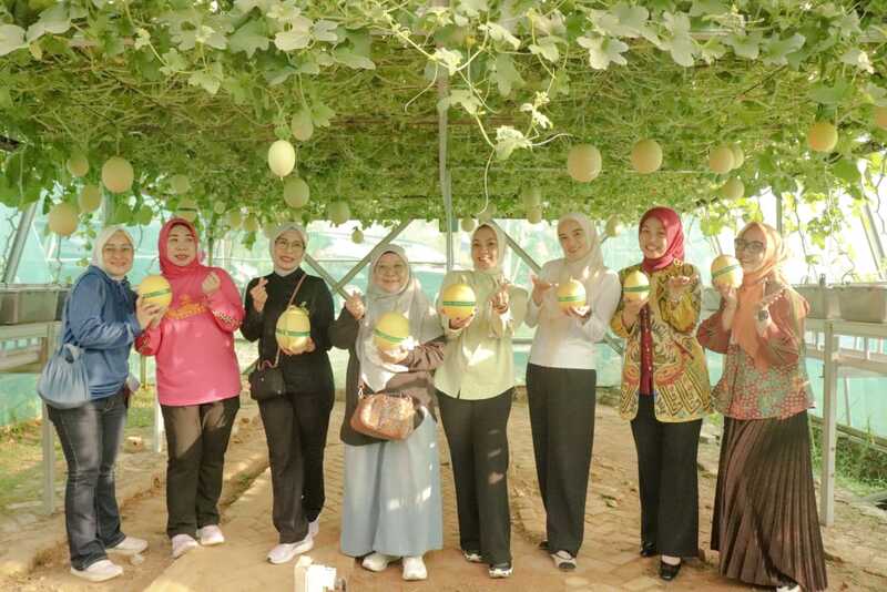 LAMPUNG SELATAN – Ketua Tim Penggerak PKK Provinsi Lampung, Purnama Wulan Sari Mirza, memimpin kegiatan panen buah melon, anggur dan sayur di PKK Agropark Kecamatan Sabah Balau, Lampung Selatan, Jumat (29/8/2025).