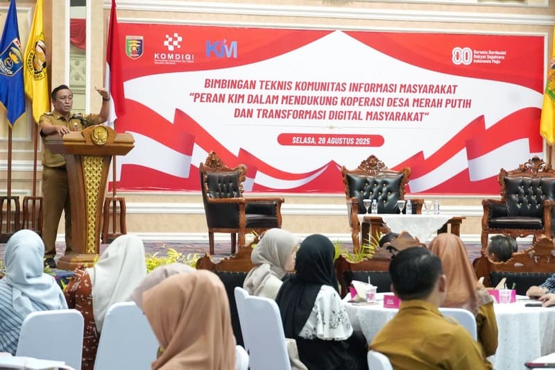 BANDAR LAMPUNG – Pemerintah melalui Kementerian Komunikasi dan Digital (Komdigi) bersama Dinas Kominfotik Provinsi Lampung menggelar Bimbingan Teknis (Bimtek) Komunitas Informasi Masyarakat (KIM) di Balai Keratun, Lantai 3, Selasa (26/8/2025).