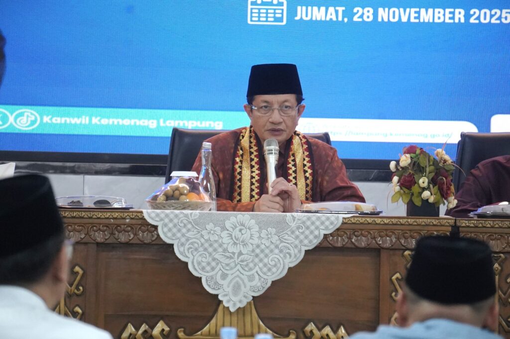 BANDAR LAMPUNG – Menteri Agama RI Prof. Dr. KH. Nasaruddin Umar, M.A. memberikan pembinaan kepada Aparatur Sipil Negara (ASN) Kementerian Agama Provinsi Lampung di Kantor Kanwil Kemenag Lampung, Jumat (28/11/2025).