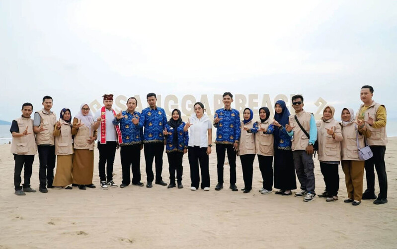 “Kita hari ini menjelajah wisata yang ada di Lampung Selatan. Tadi kita mampir ke Dayn Waterboom, dan sekarang menikmati keindahan Pantai Sanggar,” ujarnya.