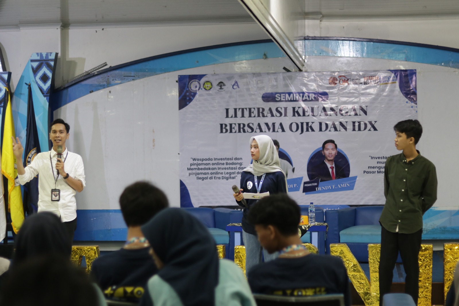 Mengusung tema besar “Literasi Keuangan Bersama OJK & IDX”, seminar ini menghadirkan dua pembicara utama yang ahli di bidangnya. Dwi Krisno Yudi Pramono membuka seminar dengan materi berjudul “Waspada Investasi dan Pinjaman Online Bodong: Membedakan Investasi dan Pinjaman Online Legal dan Ilegal di Era Digital”.