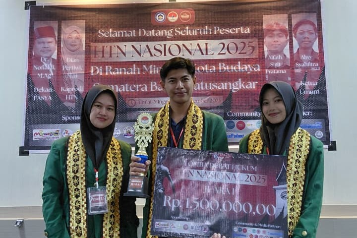 SUMATERA BARAT – Mahasiswa Fakultas Syariah Universitas Islam Negeri (UIN) Raden Intan Lampung (RIL) berhasil menorehkan prestasi dengan meraih Juara 1 pada kompetisi Debat Hukum Tata Negara (HTN) Nasional 2025.