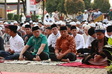 Setelah sholat, panitia menyampaikan jumlah hewan kurban tahun ini mencapai 53 ekor sapi dan 5 ekor kambing, termasuk 12 sapi dari Kapolda Lampung Irjen Pol Helmy Santika yang didistribusikan ke berbagai lembaga, masjid, sekolah, dan pondok pesantren. (*)