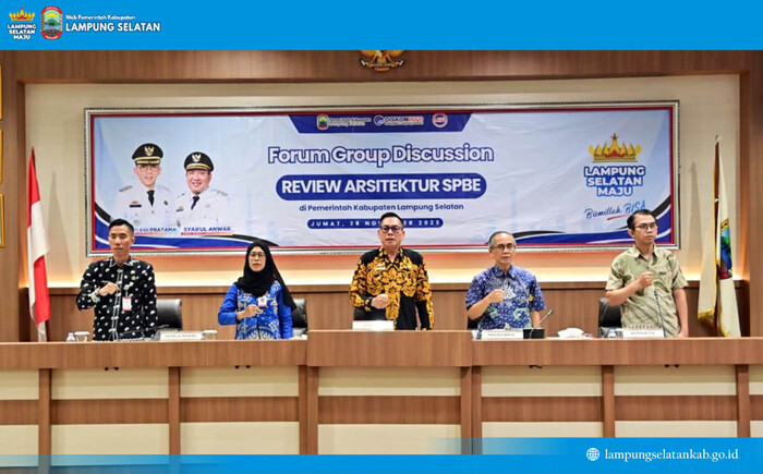 LAMPUNG SELATAN – Pemerintah Kabupaten (Pemkab) Lampung Selatan melalui Dinas Komunikasi dan Informatika (Kominfo) menggelar Forum Group Discussion (FGD) Review Arsitektur Sistem Pemerintahan Berbasis Elektronik (SPBE) dan Penyusunan Arsitektur Data di Aula Rajabasa, Kantor Bupati Lampung Selatan, Jumat (28/11/2025).