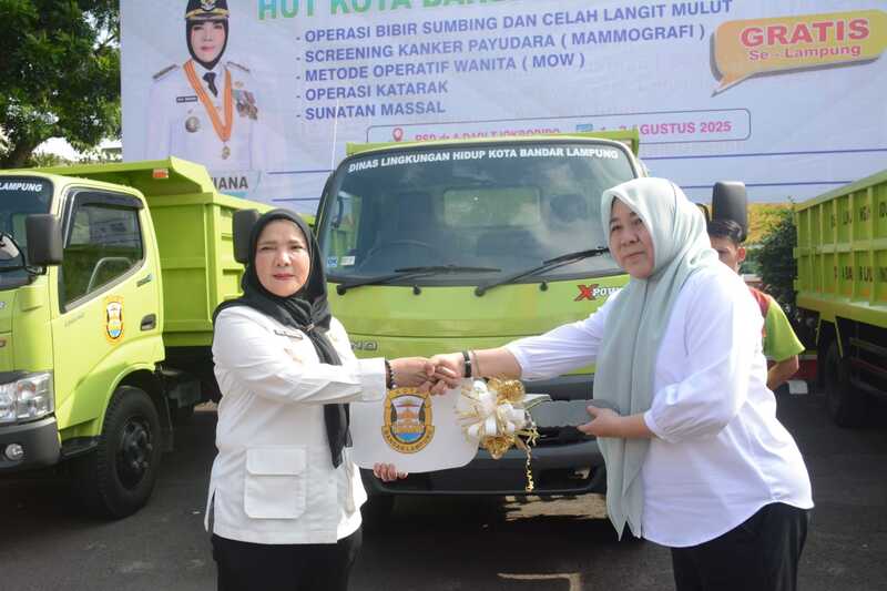 BANDAR LAMPUNG – Pemerintah Kota (Pemkot) Bandar Lampung menyerahkan tiga unit truk pengangkut sampah baru kepada Dinas Lingkungan Hidup (DLH) sebagai upaya memperkuat penanganan sampah di Kota Tapis Berseri.
