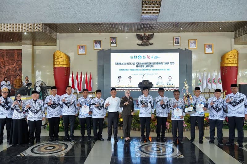 Gubernur mengungkap data menarik: dari 48 kepala dinas di Provinsi Lampung, 22 di antaranya merupakan anak dari guru. Di DPRD Lampung, sekitar 20 anggotanya juga berasal dari keluarga pendidik. “Ini bukti keberkahan profesi guru,” ujarnya.