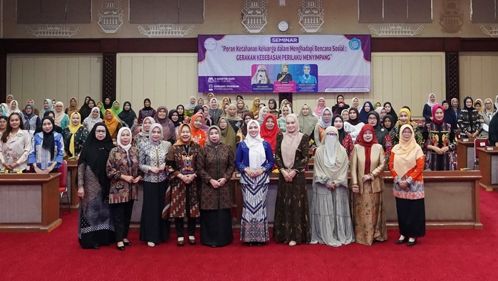 BANDAR LAMPUNG – Ketua Tim Penggerak PKK Provinsi Lampung, Purnama Wulan Sari, menghadiri seminar bertema “Peran Ketahanan Keluarga dalam Menghadapi Bencana Sosial: Gerakan Kebebasan Perilaku Menyimpang” di Gedung Pusiban, Sabtu (02/08/2025). Seminar diselenggarakan atas kerja sama antara TP PKK Provinsi Lampung dengan Lingkar Muslimah.
