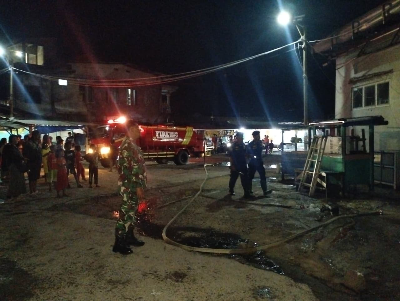 Peristiwa kebakaran terjadi sekitar pukul 19.45 WIB, saat Serka M. Fikri menerima laporan dari warga tentang kepulan asap yang berasal dari tower air di atas gedung pelelangan. Sumber api diketahui berasal dari mesin pompa air (sanyo) otomatis yang terbakar.
