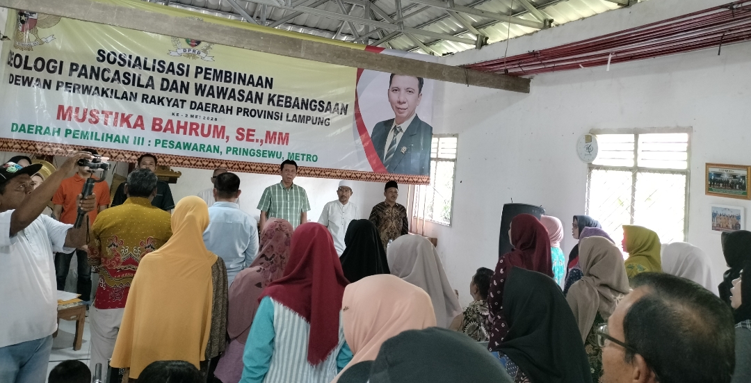 PESAWARAN – Dalam giat Sosialisasi Pembinaan Ideologi Pancasila dan Wawasan Kebangsaan, Kepala Desa Gunung Rejo Way lima, Pesawaran sampaikan ungkapan terimakasih, apresias atas kehadiran Anggota DPRD Lampung, Mustika Bahrum di wilayah kerjanya. Terlebih, kinerja sebagai anggota legislatif sudah terbukti.