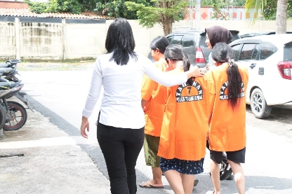Pelaku laki-laki yang ditangkap berinisial S als F (28), warga Desa Pejaten, Kecamatan Cibuaya, Kabupaten Karawang, Provinsi Jawa Barat (Jabar), sedangkan 4 (empat) pelaku perempuan yang ditangkap yakni SA (22), warga Desa Mataram Ilir, Kecamatan Seputih Surabaya, Kabupaten Lampung Tengah (Lamteng), lalu EM (31), warga Kampung Pasiran Jaya, Kecamatan Dente Teladas, Kabupaten Tulang Bawang, kemudian IP (28) dan YA (26) yang merupakan warga Sungai Menang, Kabupaten Ogan Komering Ilir (OKI), Provinsi Sumatera Selatan (Sumsel).