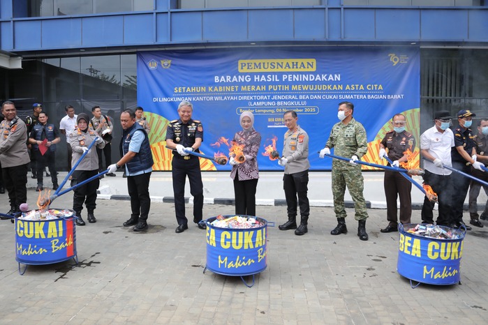 Bea Cukai Kanwil Lampung juga telah berhasil memusnahkan barang hasil penindakan sebanyak 29,8 juta batang rokok ilegal yang diamankan sejak September 2024 hingga Oktober 2025.