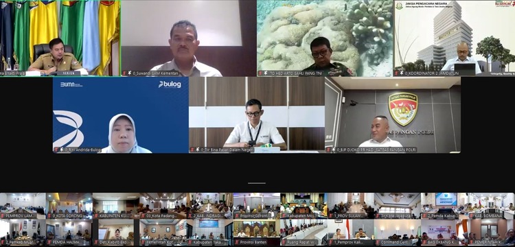 BANDAR LAMPUNG – Staf Ahli Gubernur Lampung Bidang Ekonomi, Keuangan dan Pembangunan, Zainal Abidin mengikuti rapat Koordinasi Pengendalian Inflasi Daerah secara virtual bertempat di Ruang Command Center Lt. 2 Dinas Kominfotik Provinsi Lampung, Senin (5/5/2025).