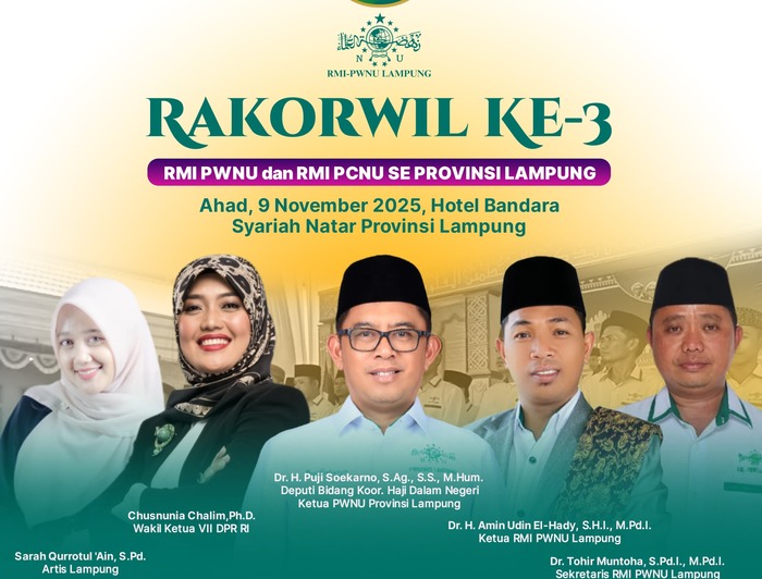 LAMPUNG SELATAN — Rabithah Ma’ahid Islamiyah Pengurus Wilayah Nahdlatul Ulama (RMI PWNU) Provinsi Lampung menggelar Rapat Koordinasi Wilayah (Rakorwil) ke-3 bersama RMI PCNU se-Provinsi Lampung di Hotel Bandara Syariah, Natar, Lampung. Kegiatan ini menjadi ajang konsolidasi penting dalam memperkuat peran pesantren di tengah tantangan zaman dan modernisasi pendidikan Islam.