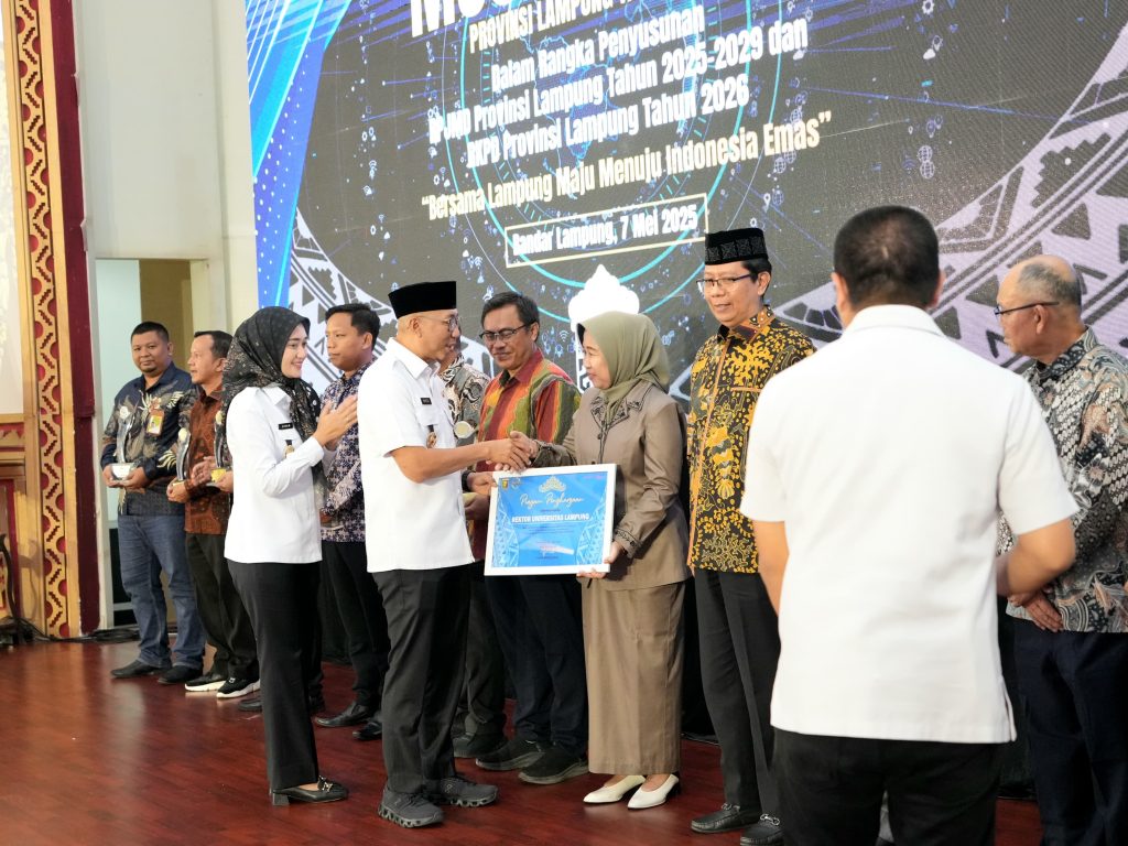 Penghargaan diberikan dalam rangkaian Musrenbang Provinsi Lampung di Auditorium lantai empat Kantor Perwakilan Bank Indonesia Provinsi Lampung, Rabu, 7 Mei 2025.