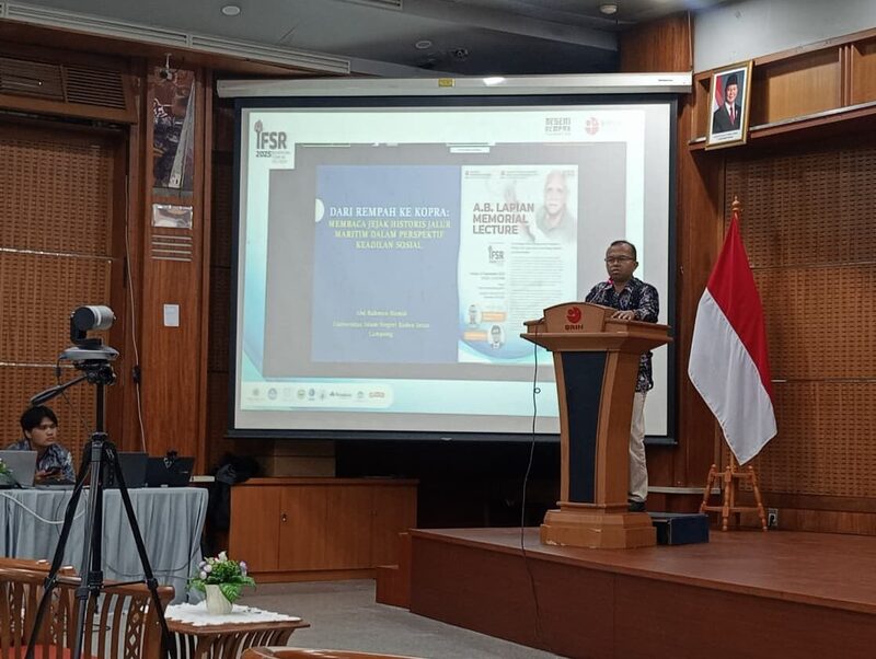 Sebagai salah satu narasumber utama, Dr. Abd. Rahman Hamid membawakan materi berjudul Dari Rempah ke Kopra: Membaca Jejak Historis Jalur Maritim dalam Perspektif Keadilan Sosial.