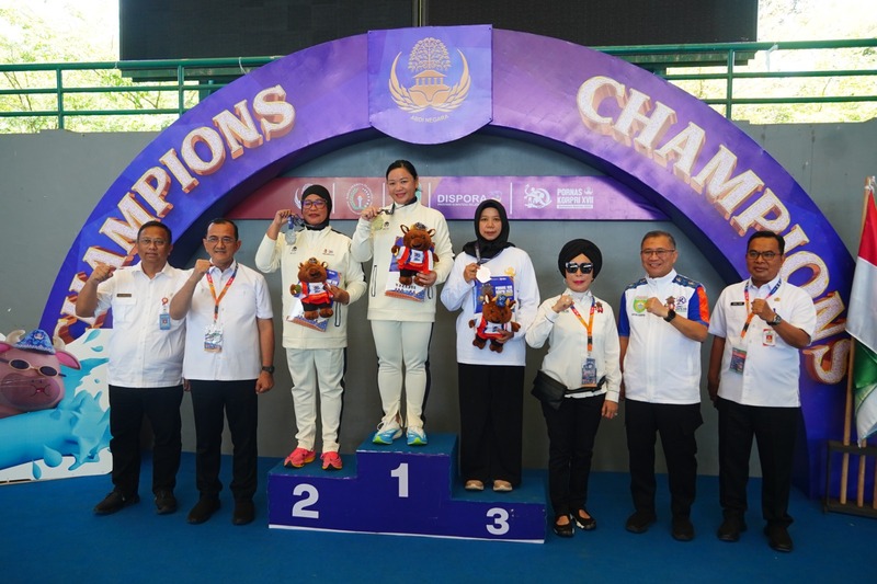 PALEMBANG — Cabang olahraga (cabor) renang kontingen Lampung kembali mengukir prestasi membanggakan dengan menambah perolehan medali dalam ajang Pekan Olahraga Nasional Korps Pegawai Republik Indonesia (Pornas Korpri) XVII yang digelar di Jakabaring Aquatic Stadium, Palembang, Rabu (8/10/2025).