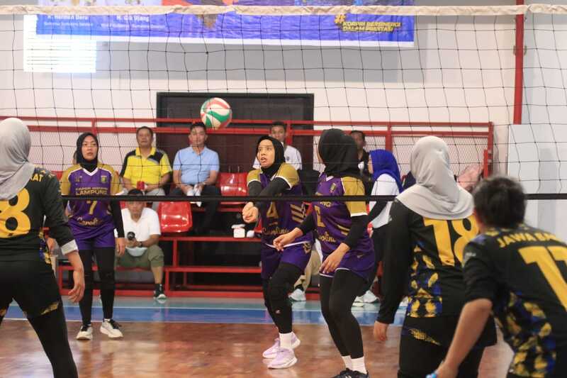 PALEMBANG — Tim bola voli putri Lampung memastikan langkahnya menuju babak delapan besar dalam ajang Pekan Olahraga Nasional Korps Pegawai Republik Indonesia (Pornas Korpri) XVII yang digelar di GOR Aneka Pertamina Plaju, Palembang, Rabu (8/10/2025).