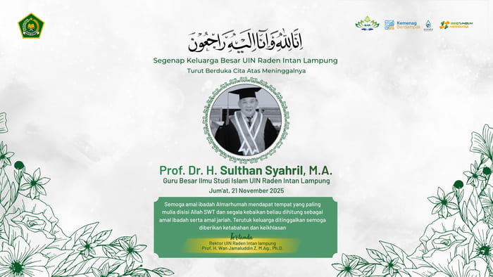 BANDAR LAMPUNG – Keluarga Besar Universitas Islam Negeri (UIN) Raden Intan Lampung (RIL) menyampaikan duka cita mendalam atas wafatnya Prof. Dr. H. Sulthan Syahril, MA, Guru Besar Bidang Ilmu Studi Islam. Almarhum menghembuskan napas terakhir pada Jumat, 21 November 2025, pukul 10.27 WIB di RS Advent Bandar Lampung. Kabar duka ini meninggalkan kesedihan mendalam bagi keluarga, kerabat, dan sivitas akademika.