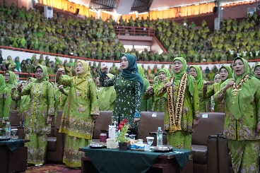 BANDAR LAMPUNG — Wakil Gubernur Lampung Jihan Nurlela bersama Ketua Umum Dewan Pembina Pimpinan Pusat Muslimat Nahdlatul Ulama Khofifah Indar Parawansa, yang juga Gubernur Jawa Timur, menghadiri Tasyakur dan Hari Lahir (Harlah) Muslimat Nahdlatul Ulama ke-80 yang dirangkaikan dengan inaugurasi paralegal Muslimat NU dan halal bihalal di Gedung Serba Guna Universitas Lampung, Minggu (26/4/2026).