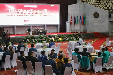 Kuliah Umum tersebut bertepatan dengan Pelantikan Pengurus BEM UKBM Unila Periode 2025.