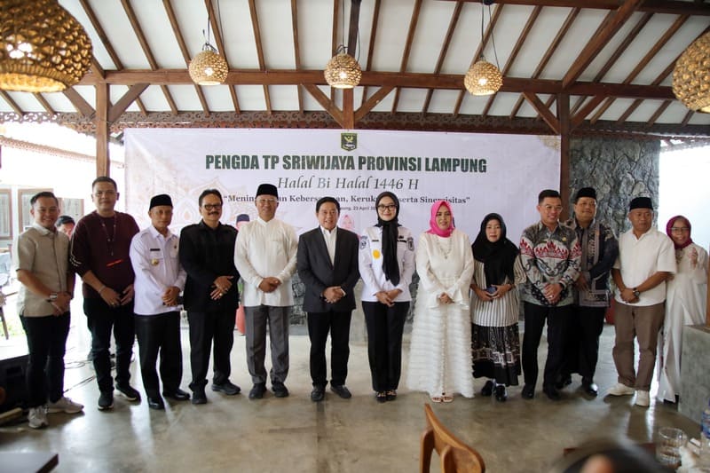 BANDARLAMPUNG – Wakil Gubernur Lampung Jihan Nurlela menghadiri Halalbihalal Tenaga Pembangunan (TP) Sriwijaya yang diselenggarakan di Resto Joglo Watu, Bandar Lampung, Rabu (23/4).