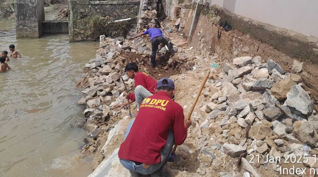 BANDAR LAMPUNG – Pemerintah Kota Bandar Lampung melalui Dinas Pekerjaan Umum (PU) mulai melakukan pembangunan tembok warga yang jebol sehingga membuat air meluap di kelurahan Pematang Wangi dan Kelurahan Waykandis.
