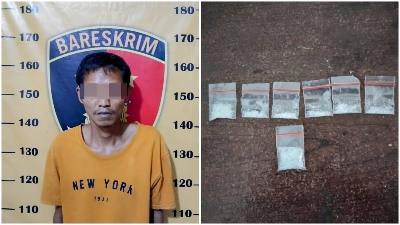 Dari tangan pelaku, petugas menyita tujuh paket sabu yang disembunyikan di bawah lemari kamar tidurnya.